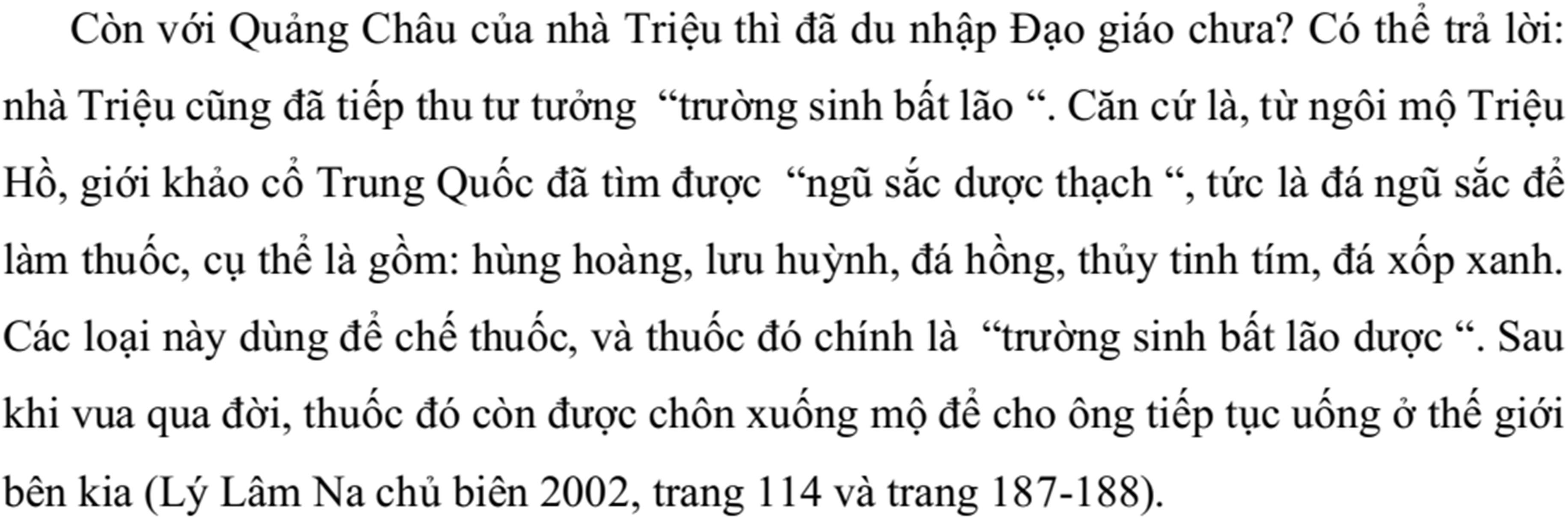 Ý nghĩa trên càng giá trị, khi chúng ta so sánh để thấy, ngang thời gian trên, tư tưởng thần tiên cũng đã đến Quảng Châu với nhà Triệu (ông cháu nhà Triệu Đà – Triệu Hồ). Cụ thể như sau (trích từ Chu Xuân Giao 2021, 2022):